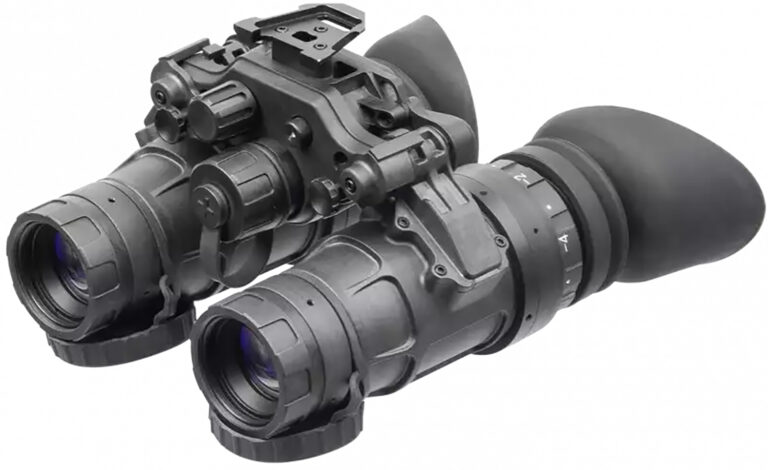The UNVG uses advanced multi-coated optics and is built to last with a compact composite housing. The device can be outfitted with a Gen 2+ or Gen 3 high-performance image intensifier tube (IIT). The bright light cut-off feature ensures that the high-quality photocathode tube is protected. The UNVG is also equipped with manual gain control, which adjusts the image brightness, providing the highest possible image quality even in changing light conditions. The independent movement of the pods allows for single or dual eye configurations for increased operational flexibility. Each tube will automatically turn off when flipped up. Operating from a single AA alkaline battery, the UNVG can run up to 15 hours. With an external battery pack (included), the operating time increases to 50 hours. Also equipped with an integral infrared illuminator for reading in the dark. The device can be installing to a either standard dovetail type headset and helmet mount. UNVG-51 model with a 51 field of view provides a large visual field without needing to move the binoculars.