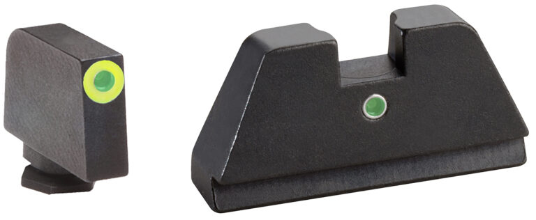 AmeriGlo brings a clear advantage to your shooting experience on and off the range. AmeriGlo Optic Compatible Sight Tall Suppressor Sights set provide a precise, elevated co-witness sight picture for slide-mounted red dot optics and suppressors and serve as reliable back-up sights. This XL Tall model has a green tritium front sight with lumigreen outline and a green tritium i-dot rear sight configuration with black finish. It is compatible with all Glock Gen 1-5 models. Fits Glock MOS slide. Compatible with Aimpoint Acro, Holosun 509T, Steiner MPS footprints.
