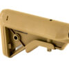 Building upon the success of the B5 Systems Enhanced SOPMOD, B5 has taken the features end users demand; offering them in a lighter, more compact, and stronger buttstock. The Bravo stock maintains the SOPMOD cheekweld, one piece anti-rotation quick disconnect sling mount, no slip cushioned buttpad, and improved suregrip stock latch. The Bravo omits the Sopmods storage capability providing a slimmer profile, and angles the rear of the stock ensuring quick and consistent stock placement against the shoulder and cheek. Made of milspec materials and finishes. Proudly made in the USA.