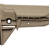 Bravo Company’s BCMGUNFIGHTER Stock Assembly Mod 0 SOPMOD is the strongest light-weight polymer stock available for your mil-spec receiver extension. With no sharp edges this snag free design prevents the tangling of the rifle with the shooter’s sling, molle gear or other kit. It has a more pronounced cheek weld-SOPMOD type. The modular VBOST (Vehicle Borne Operations Sling Tab) interfaces with the shooter’s riggers’ band or bungee to secure the shooter’s sling against the stock when the carbine is not in use. Increasingly, this is the most common application when operating inside a vehicle. It has 2 different types of ambidextrous sling mounting options, including QD swivel sockets and an integrated color matched rubber butt pad for secure shoulder placement, along with increased durability. With its simple modular design, 6 parts and 1 screw, it allows for modular adaption of future stock options and configurations.