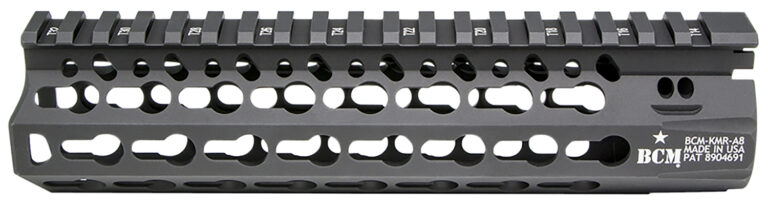 Bravo’s KMR Alpha is constructed of aluminum with a hardcoat anodized finish for corrosion resistance and is free-floating. Its interface system was developed to work in parallel with the current picatinny system. This rail system allows for a larger range of modularity offering four different offset mounting positions between traditional 3,6,9, and 12:00 positions. Included is a BCM KeyMod sling mount