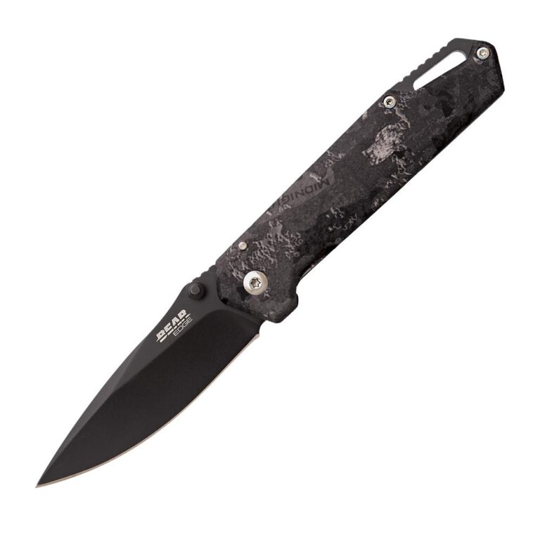 Bear & Son Brisk 3.0 Medium Folding Knife 2-7/8″ Drop Point Blade Midnight Camo