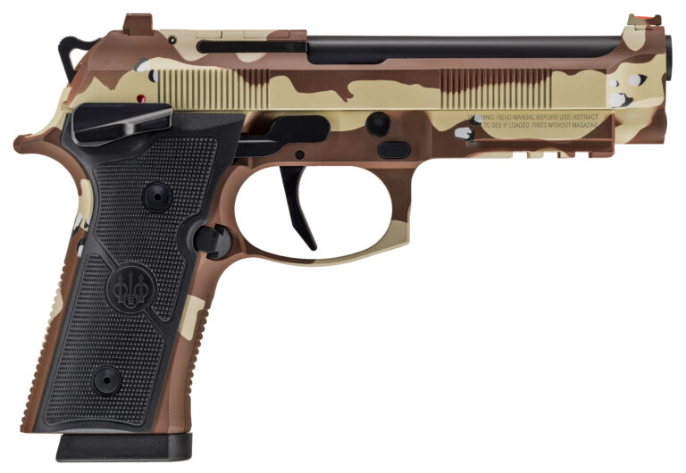 BERETTA USA IS PROUD TO PARTNER WITH HOWE ARMS ON THE LIMITED-EDITION 92XI AMERICAN COMBAT SERIES. – Founded by Richard Howe a two-tour Army combat veteran who served in Afghanistan Howe Arms is more than a business it serves as a support system for disabled combat veterans and their families offering purpose and assistance. – The Beretta 92XI Combat Series pays homage to the heritage of military camouflage patterns recognizing the vital role these patterns play in enhancing soldier concealment and mission success. Each pistol in this exclusive collection is meticulously hand-painted by a disabled veteran artist. Featuring iconic American combat camouflage patterns like Vietnam Tiger Stripe Chocolate Chip Battle Dress Uniform (BDU) Desert Camouflage Uniform (DCU) and MultiCam each piece represents a story of sacrifice and service. Together Beretta and Howe Arms honor the courage and dedication of those who have served. – The 92XI Combat series features the 92XI Single-Action Only (SAO) pistols. The 92XI brings the long-awaited frame mounted safety to the standard 92 family of products as well as a single action only variant and various ergonomic enhancements. The frame mounted safety offers an ambidextrous solution bringing the safety lever more in reach with natural ergonomics. The 92XI features the X-treme-S single action only and flat faced trigger performance DLC coated trigger components and a lightweight skeletonized hammer allowing for a crisp trigger pull with the option to go cocked and locked. The 92XI carries forward the Vertec style frame a fiber optic front sight for faster sight acquisition and the option for MRDS optics mounting making this a high performing reliable choice for personal defense and competition – X-TREME S TRIGGER – SINGLE ACTION – Flat trigger profile for more consistent engagement with DLC coated components for a smoother action. – FIBER OPTIC FRONT SIGHT WITH MRDS MOUNTING – Fiber optic front sight offers a superior sight acquisition with MRDS mounting capability to give that extra edge in competition or defensive situations. – AMBIDEXTROUS FRAME MOUNTED SAFETY – Traditional design optimized for competition to quickly engage and disengage the safety for speed and manipulation. – CHECKERED FRAME WITH ENHANCED GRIP PANEL TEXTURING – Aggressive texturing to help maintain consistent grip for recoil management and shot placement. – CUSTOM CERAKOTE® FINISH – Each pistol is hand painted by veteran-owned company Howe Arms which makes each pistol unique by having its own fingerprint. Choose from iconic camo designs like Vietnam Tiger Stripe Chocolate Chip BDU DCU and MultiCam to elevate your arsenal with precision and pride. – CHOCOLATE CHIP – Chocolate chip is a nickname for the six-color desert camouflage pattern developed by the U.S. in 1971 used initially in the Sinai and most notably during Operation Desert Shield/Storm and in Somalia. – ACTION SINGLE-ACTION ONLY – FIRE CONTROL HAMMER-FIRED – BARREL LENGTH 4.7 IN – CALIBER 9mm – GRIP WIDTH 1.5 IN (AT GRIP RADIUS) – OVERALL HEIGHT 5.4 IN – OVERALL LENGTH 8.5 IN – OVERALL WIDTH 1.5 IN – SIGHT RADIUS 6.1 IN / 155mm – WEIGHT UNLOADED 33.3 OZ