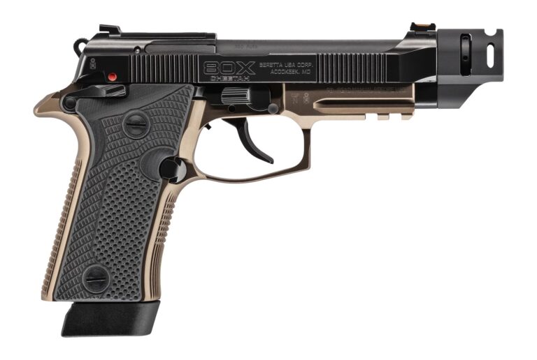 The Beretta 80X Cheetah Tactical reimagines the legendary platform, with a sleek design for concealed carry. Features a threaded barrel; Vertec-style grip profile; the X-treme S Double/Single trigger; skeletonized hammer; threaded black barrel; 3-Dot white sights; polymer grip panels ensure a secure hold, maintaining control during extended engagements. Includes two extended magazines, offering a 15rd capacity.