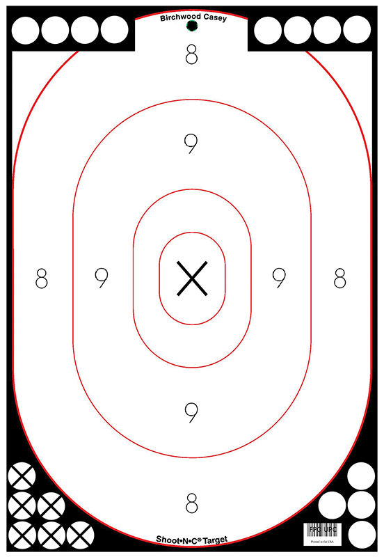 Birchwood Shoot-N-C White/Black Silhouette Targets make an excellent indoor target. The black “halo” can be easily seen at many distances. Great for indoor, outdoor and low-light conditions, the white over black colors make seeing your crosshairs and open sights very easy. Self adhesive targets come with pasters to extend the life of your targets by repairing bullet holes or as extra aiming points. Includes 90 repair pasters to lengthen target life.