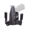 The Mini WING(TM) by BlackPoint Tactical is designed to be a minimized IWB holster which allows the user to carry comfortably all day long without sacrificing performance or durability. The pairing of KYDEX(R) and leather on this holster provides the functional benefits of a KYDEX(R) holster while providing the flexibility and comfort of a leather holster. The KYDEX(R) reliably retains your pistol without a break in or wear out period and it prevents the holster from collapsing when your pistol is drawn for easy one handed holstering. The mini wings give the holster flexibility to move with your body, making it comfortable for use all day, every day. Additionally, the mini wings were constructed to provide the user with a variety of different configurations for IWB carry with adjustments available to the cant and ride height of the holster.