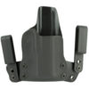 The Mini WING(TM) by BlackPoint Tactical is designed to be a minimized IWB holster which allows the user to carry comfortably all day long without sacrificing performance or durability. The pairing of KYDEX(R) and leather on this holster provides the functional benefits of a KYDEX(R) holster while providing the flexibility and comfort of a leather holster. The KYDEX(R) reliably retains your pistol without a break in or wear out period and it prevents the holster from collapsing when your pistol is drawn for easy one handed holstering. The mini wings give the holster flexibility to move with your body, making it comfortable for use all day, every day. Additionally, the mini wings were constructed to provide the user with a variety of different configurations for IWB carry with adjustments available to the cant and ride height of the holster.