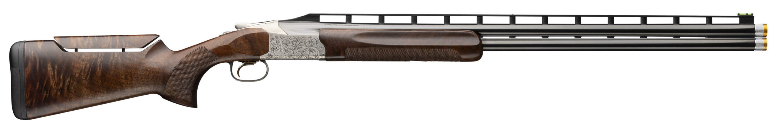 The Citori 825 Pro Trap over and under shotgun is built to compete with adjustments for drop cast on/off trigger and more. Pro Balance stock weights fine tune swing and curb felt recoil. Grade III/IV checkered walnut with a gloss oil finish. Low profile receiver with updated engraving and refined lines. New Fire Lite 2 Mechanical Trigger Inflex II recoil pad Invector-DS chokes. High-post rib. – Citori 825 Pro Trap Exclusive Features – Pro Fit Adjustable Comb makes it easy to dial-in bead alignment – Pro Balance System fine-tunes the balance point for a smooth swing and mount – Gloss oil finish Grade III/IV walnut stock with vertical grip and palm swell – Semi-beavertail forearm with finger grooves – High post floating rib – Triple Trigger System with three trigger shoes – HiViz® Pro Comp sight and ivory mid-bead – Five extended choke tubes – POI: 70/30 – Ideal for trap – ABS case included – Citori 825 Features – Low profile receiver with sharp modern contours – Transverse mounted full-width hinge pin maximizes strength and longevity – Tapered locking lug and recess self-adjusts for wear to keep lock up tight – Chrome chambers increase durability and corrosion resistance – Inflex II Recoil Pad (except Trap Max) – Fire Lite 2 Mechanical Trigger – Steel Shot Performance – Vector Pro Lengthened Forcing Cone – Invector-DS Choke Tube System – Back-Bored Technology