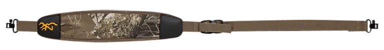 Shock absorbing neoprene pad, rubberized non-slip pad backing, thumb loop, polymer ladder buckle, metal sling swivels included