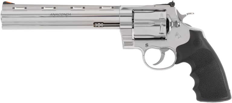 Shooter’s Model are 100% New in the Box products that may have a slight finish imperfection that is not covered by Colt’s one year warranty. The slight imperfection would occur during the manufacturing process and are typically very hard to see except to the well-trained eye or with a magnifier. – Colt’s popular Snake Gun revolver series gains a new addition with the updated Anaconda. The 2021 Anaconda has been fully re-designed to utilize an oversized Python action. Bulked-up with a solid stainless steel frame for strength and durability this DA revolver is worthy of its pedigree. – Experience the Linear Leaf Spring Action for a non-stacking smooth-as-glass trigger pull. With recoil-absorbing Hogue grips and adjustable interchangeable sights this .44 Magnum is cool and comfortable from the range to the woods. – A recessed target crown offers protection and the frame is drilled and tapped for optics mounts making the Anaconda an unstoppable huntsman’s sidearm. – Capacity: 6 Rounds – Frame Material: Stainless Steel – Finish: Semi-Bright – Barrel Technical: 1:20 LH 6 Groove – Barrel Length: 8 – Overall Length: 15 – Overall Height: 7.25 – Overall Width: 2.75 – Front Sight: Red Ramp – Rear Sight: Target Adjustable – Trigger Action: DA/SA – Grip: Hogue Overmolded – Unloaded Weight: 59 oz