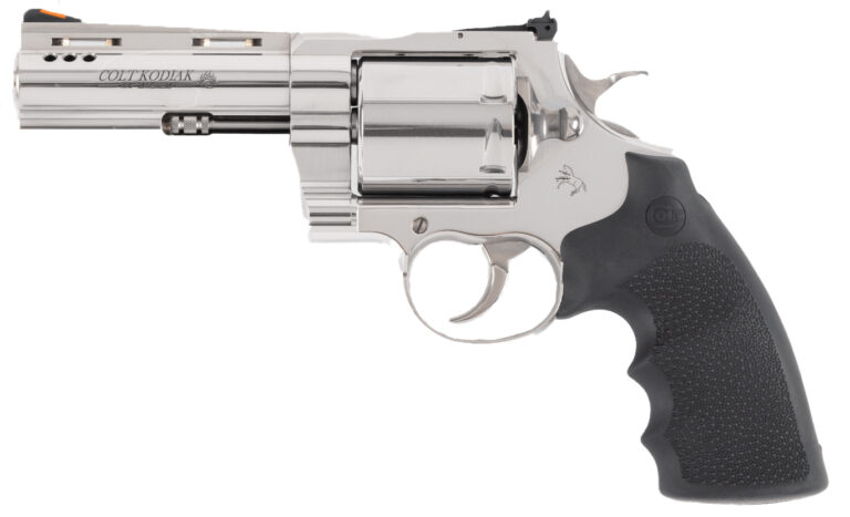 Shooter’s Model are 100% New in the Box products that may have a slight finish imperfection that is not covered by Colt’s one year warranty. The slight imperfection would occur during the manufacturing process and are typically very hard to see except to the well-trained eye or with a magnifier. – FEATURES – The leaf-spring action provides a non-stacking smooth-as-glass trigger pull. – Recoil-absorbing Hogue® overmolded grips are interchangeable with all Colt Python & Anaconda grips. – Red ramp front sight and adjustable rear sight for windage and elevation. – 1-Piece full lug ventilated rib stainless steel barrel with recessed target crown and ported for muzzle control. – Stainless steel frame with a polished finish and matte surface on the top rib for easier sight acquisition. – Unfluted 6-round cylinder chambered for 44 Magnum. – Unloaded Weight 48.5 lbs (1375 g) – Capacity 6 Rounds – Frame Material Stainless Steel – Finish Stainless Steel – Barrel Technical 1:20 LH 6 Groove – Barrel Length 4.25 (108 mm) – Overall Length 10 (254 mm) – Overall Height 6 (152 mm) – Overall Width 1.75 (45 mm) – Front Sight Red Ramp – Rear sight Target Sight adjustable for windage and elevation – Trigger Action Double & Single Action – Trigger Pull Double Action 7-9.5 lbs (31-42N) – Grip Hogue® OverMolded rubber grips