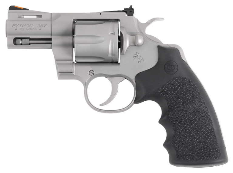 Building on Colt’s Snake Gun legacy the legendary double-action revolver is now available in stainless steel in 2.5 barrel lengths. The 2024 Python features a matte finish and a re-designed rear sight. Thirty percent more steel beneath the rear adjustable target sight gives you a stronger revolver and more robust shooting experience. A recessed target crown user-interchangeable front sight and recoil absorbing interchangeable Hogue® OverMolded rubber grips make this a gun you’ll want to shoot AND show off. The Python is chambered in .357 Magnum and also accommodates 38 Special cartridges.