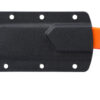 The perfect blend of form and function. The Razel Compact takes designer Jon Graham’s fixed-blade knife and adds versatility while reducing size. Brutalist and elegant at the same time, the D2 steel blade in an oxide finish balances Veff Flat Top Serrations, a front chisel, and a gently curved leading edge, all coming together in a pocket fixed blade that can be used for cutting rope, scraping, and slicing. The G10 handle in high-viz orange gives it a pop of color, while the fob provides extra purchase for a secure grip. A durable thermoplastic pocket sheath comes standard for convenient and comfortable carry all day long.
