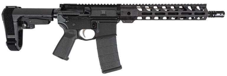 Features – Barrel: Chrome Moly steel phosphate coated barrel. Chambered in 5.56 NATO with a 1/7 twist M4 barrel extension and a carbine-length gas system. Barrel is finished off with a DPMS 10.5 Lightweight M-Lok rail low-profile gas block and A2 flash hider. – Upper: Forged 7075-T6 A3 AR upper is machined to MIL-SPECS and hard coat anodized. Uppers include forward assist and dust cover. These uppers are made for us right here in the USA by a mil-spec manufacturer. – Bolt: Full-auto profile bolt carrier group. Shot-peened mil-spec Carpenter No. 158® steel bolt. Gas Key Hardened to USGI Specifications Fastened with Grade 8 screws and Staked Per Mil-Spec. – Lower: These forged lowers are quality made using 7075-T6 aluminum and are marked MULTI for caliber. Finish is hard coat anodize. Finished with a Magpul MOE Grip SB Tactical SBA3 Pistol Stabilizing Brace and 6 position 7075 buffer tube. The fire control group is a DPMS Panther Polished Trigger (PPT) single-stage assembly. – Details – Barrel Length: 11.5 – Barrel Profile: A2 – Barrel Steel: Chrome Moly Vanadium – Barrel Finish: Phosphate – Chrome Lining: No – Muzzle Thread Pattern: 1/2 x 28 – Twist Rate: 1 in 7 – Barrel Extension: M4 – Gas System Length: Carbine – Diameter at Gas Block: .750 – Gas Block Type: Low-Profile Gas Block – Muzzle Device: A2 -style – Receiver Material: Forged 7075-T6 – Receiver Type: M4 – Handguard Type: DPMS 10.5 Lightweight M-Lok – Bolt Material: Carpenter 158 Steel – Bolt Carrier Profile: Full Auto – Fire Control Group: Panther Polished Trigger (PPT) – Grip: Magpul MOE Grip Black – Buffer Tube: 7075 T6 Aluminum – Adjustment: 6 Position – Pistol Brace: SB Tactical SBA3 Pistol Stabilizing Brace