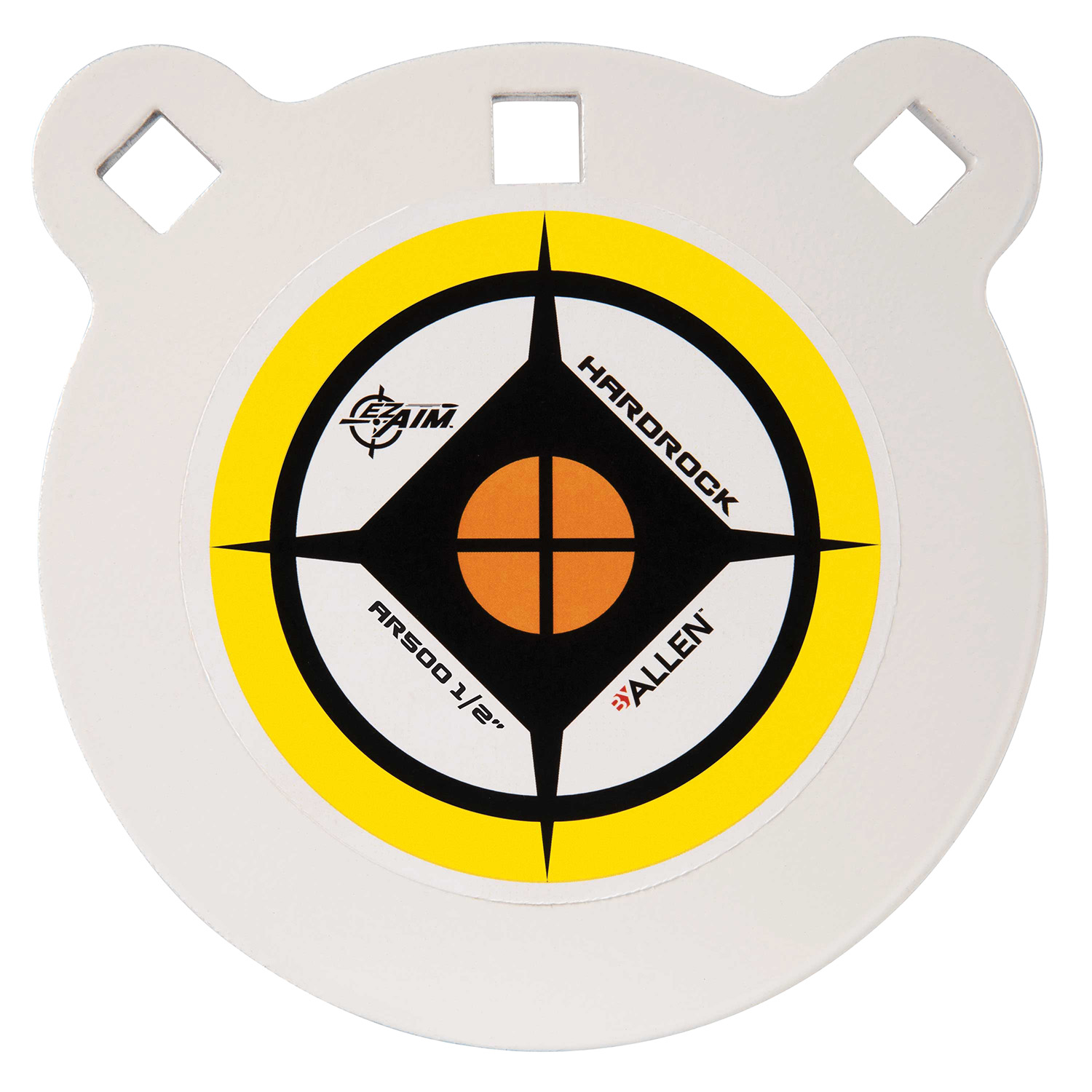 The EZ-Aim Hardrock AR500 Target is made of 1/2″ thick armor plate steel to withstand the impact from high power hunting rifles. The white Powder Coat finish shows bullet impacts. EZ-Aim Hardrock gongs have three connection points: two at the edge for attaching chains or straps and one in the center for gong hook attachment: Dimensions 6″ diameter and 1/2″ thickness.