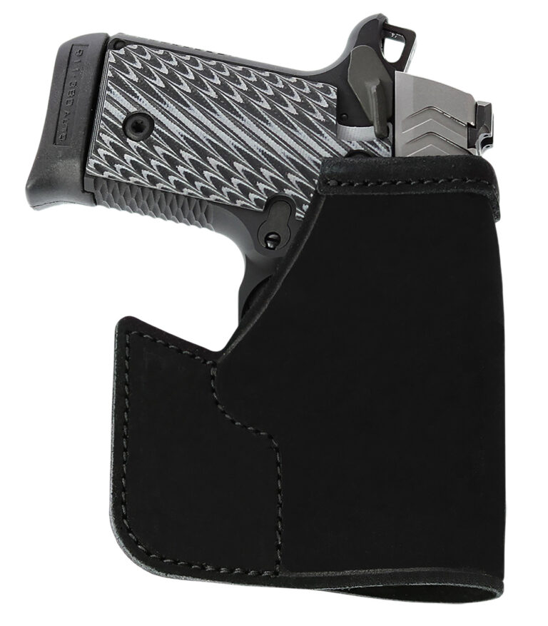 While limiting the carrier to a relatively small handgun, pocket carry offers some unique advantages. Not only is the handgun completely covered and concealed, but the gun carrier can casually place a hand on the holstered/pocketed pistol if a nonspecific threat materializes and the fastest draw is to have the gun already in hand. Galco’s pocket holsters greatly minimize shifting of the handgun in the pocket, allowing for a fast and sure grip acquisition when drawing.