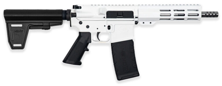 Type: AR15 Pistol – Finish: Cerakote – Caliber: .223 Wylde – Barrel: 7.5 – Barrel Options: 416R Stainless Steel – Rifling: 1:8 Twist – Thread Pitch: 1/2×28 – Feed Ramp: M4 – Lower Receiver: Billet Aluminum 7075 – Upper Receiver: Forged Aluminum – Gas Block: . 750 – Handguard: 15.25 Aluminum 6061 M­LOK with Full Top Picatinny Rail – Trigger: Mil-Spec – Custom Muzzle Device – Pistol Brace: G-Force GFAB001 Ace of Brace Adjustable 5 Position Brace