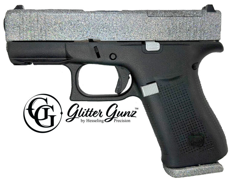 GlitterGunz is a durable sparkling coating applied utilizing specialized equipment and a patent-pending process. The slight tactile texture of the coating provides the user with a non-slip grip making it easier to operate a semiauto handgun’s slide.