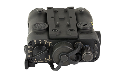The LE420G is a 7075 Aluminum bodied multi- laser aiming device. Includes class IIIA visible green laser, class 2M IR laser, and IR Illuminator coaxially mounted for easy zeroing. Also features a 600 Lumen white light, IR Illuminator focus adjustment, quick release picatinny rail mount, remote pressure switch, IP67 water resistance, and is powered by two CR123 batteries for increased run-time.