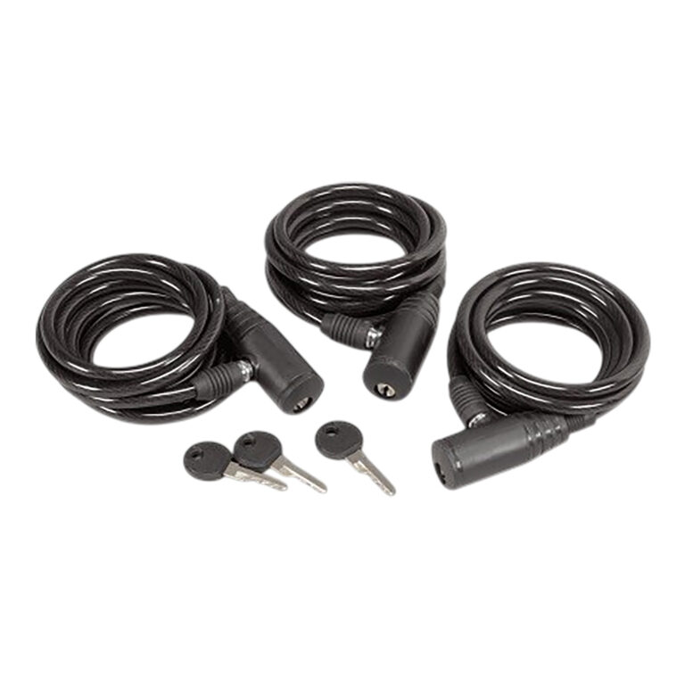 Protect tree stands with this three-pack of 6-foot coiled-cable key locks. The self-contained lock is easy to get around a tree. Each lock comes with one key.