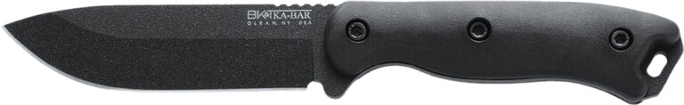 The Short Becker Knife is a modestly sized field knife perfect for belt or pack carry. Made as a solid one piece design, it is constructed of 1095 Cro-Van with a ridged thumb serration area to help with control during pressure cutting. The blade has been flat ground to maintain strong edge retention and provide for easy sharpening even in the field. Includes a MOLLE compatible Cordura sheath and an extra set of brown handles. Made in the USA.