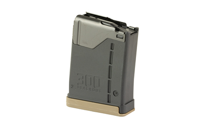 The L5AWM 300BLK magazine has been specifically designed for use with heavy subsonic .300 Blackout ammunition, especially with 200+ grain projectiles. Its updated internal magazine geometry allows these longer, heavier bullets to stack properly, enhancing feeding reliability compared to a traditional .223/5.56 magazine. The magazine body features distinctive .300 Blackout markings, and it ships with a contrasting flat dark earth floor plate for easy visual identification.