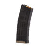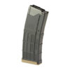 The L5AWM 300BLK magazine has been specifically designed for use with heavy subsonic .300 Blackout ammunition, especially with 200+ grain projectiles. Its updated internal magazine geometry allows these longer, heavier bullets to stack properly, enhancing feeding reliability compared to a traditional .223/5.56 magazine. The magazine body features distinctive .300 Blackout markings, and it ships with a contrasting flat dark earth floor plate for easy visual identification.