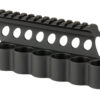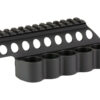 SureShell shotshell carriers for the Beretta 1301 feature mounting brackets with integral top Picatinny sight rails. Using the top mounting screw holes found on the Beretta 1301 shotguns, the SureShell shotshell carriers are thus slung on the left side of the receiver, securely fastened at the top. No other shell carrier mounting method is as secure or looks as good. The Picatinny rails are machined from aircraft grade 6061-T6 aluminum, which are mil-spec hard anodized and provide an extremely durable non-glare matte finish. The basic saddle rail design provides a robust mounting platform suitable for mounting a variety of optical sights, while a second version, which is nearly identical to the basic version, also includes a Mesa Tactical four, six, or eight shell SureShell shotshell carrier mounted on the left side of the receiver. Both versions are manufactured in compliance with MIL-STD-1913 Picatinny specifications, and no gunsmithing is required for installation.