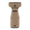 A textured vertical grip that deploys in either a vertical or horizontal position and provides a positive grip surface. Allows the support hand to apply rearward pressure keeping the weapon shouldered, yielding better muzzle control and accuracy.