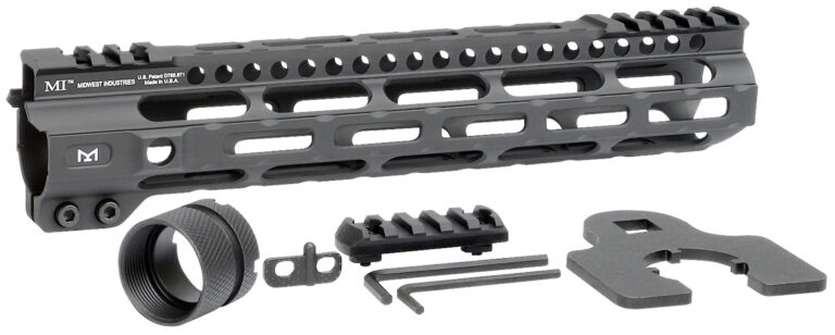 The Combat Lightweight M-Lok Handguard features a lightweight design with a slim profile. It is constructed of 6061 aluminum with a continuous 1913 Picatinny top rail, two integral anti-rotation QD sling sockets and seven sides of M-Lok. This free-float handguard also utilizes a 4140 heat treated barrel nut, 4140 heat treated torque plate, and is fully dehorned and deburred. It includes a barrel nut, wrench and 5-Slot polymer M-Lok rail. Made in USA.
