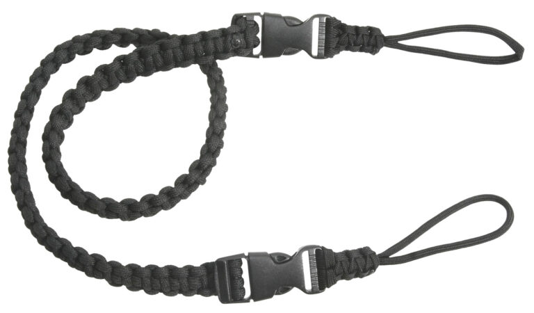 This Outdoor Connection paracord binocular strap is 32.5″ long and finished in black.