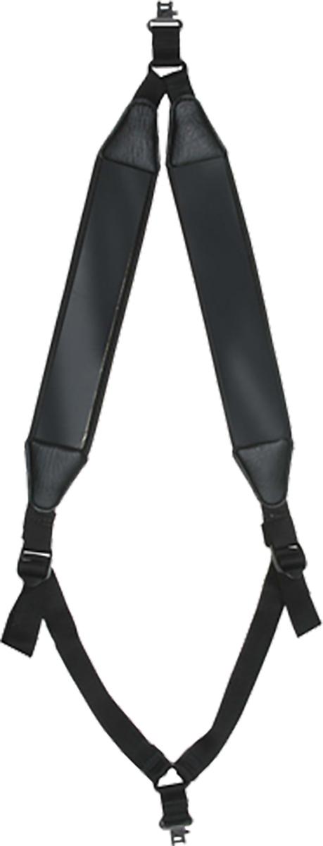 Over 2 inch wide neoprene shoulder Both hands remain free Functions as a traditional sling Holds firearm in center of back while walking/moving Talon detachable 1 inch swivels Guaranteed for life