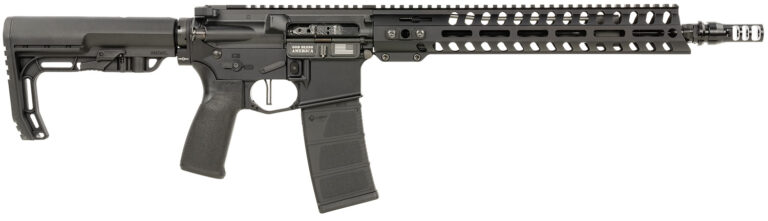 Minuteman Rifle, 5.56x45mm NATO, 13.75″ Barrel w/pinned Dead Air muzzle brake, 13″ Renegade Rail, Mid-Length Lo Pro DI Gas Block.