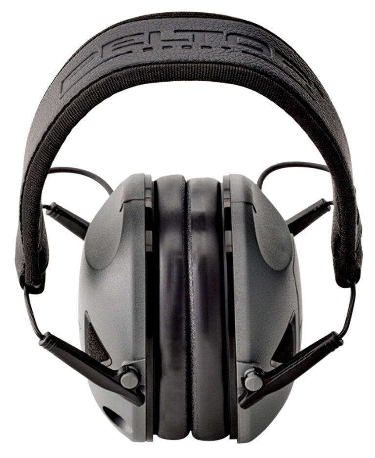 Peltor Sport RangeGuard Electronic Hearing Protector is ideal for range and hunting use. It suppresses gunshot noise to protect hearing with a noise reduction rating (NRR) equal to 21 dB while amplifying voices for clear communication. It has an adjustable, padded headband, and its’ low-profile cup design works with shotguns and rifles. The RangeGuard features durable, recessed microphones with single on/off and volume control, and a 3.5 mm audio input jack for mp3 and 2-way radio compatibility. It runs on 2 AAA batteries (not included), accessed by a single, external battery door and 4-hour auto shut off to preserve battery life.