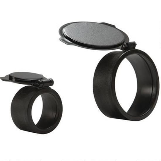 Designed to fit ocular and objective lens – Works with binoculars flashlights smaller spotting scopes and other field optics – Gathers light in low light situations – Matte black lid – Cover will flip back and lay parallel to the scope – Snap-lock lid