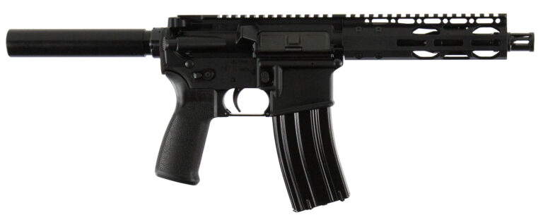 The Radical Firearms complete AR-Pistol is a fully Mil-Spec AR-15 pistol built using law enforcement grade upper receivers and mil spec lowers. The 4140 chromoly vanadium steel barrel is Melonite treated for a harder-than chrome finish. This same finish is applied to the bolt carrier groups, helping to reduce receiver wear and increase reliability. The bolt heads are MIL-STD and MPI for quality assurance. The full-length, free-float handguard keeps your hands cool and provides plenty of room for accessories. This model has a 7.5″ barrel, Radical Firearms 7″ RPR handguard with Magpul M-LOK slots on sides and bottom of the rail.