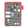 The most comprehensive AR15 bench block ever allows you to tap 13 critical pins from 5 different components. The block is wrapped in an over-molding that grips to your bench to prevent slippage. Plus, engraved on the ultra-tough engineering grade surface are clear component labels marked with pin punch sizes to make determining what component to place where and what pins to use, simple. On the backside of the block, to capture pins and keep them from rolling away, are embedded magnets and, to keep your pins from getting lost, a pin storage section is included.