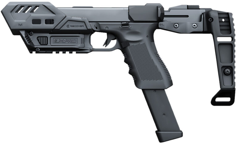S-PRO is next-level pistol conversion kit, featuring a spring-loaded stabilizer (which can be converted to a buttstock by removing the included brace attachment), MLOK mounting options, and broad compatibility.