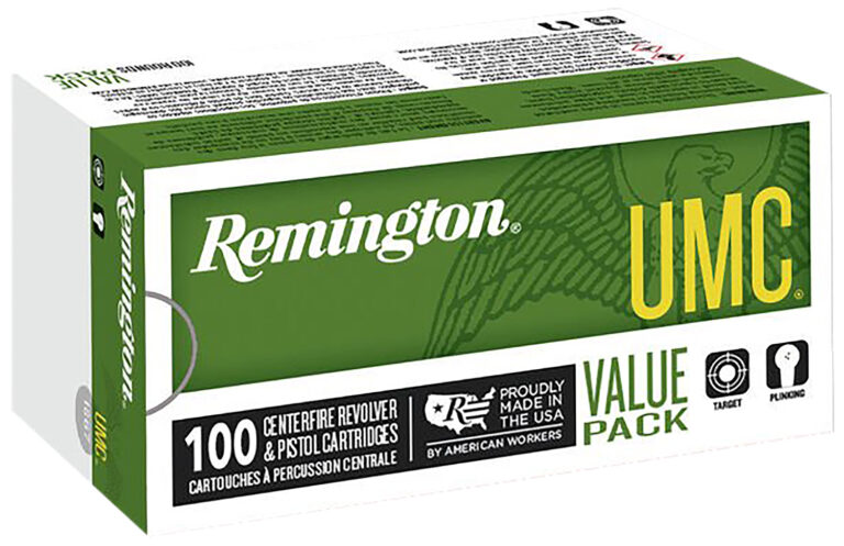 All UMC handgun ammunition is American-made, using first-quality, factory-fresh brass, and clean-shooting Kleanbore primers to provide the best value for practice, personal defense, and hunting.