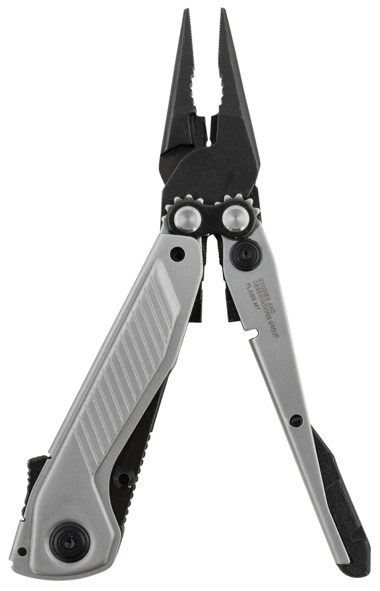 A street-smart multi-tool that boasts everyday capabilities in a compact package. For those who value daily readiness, the versatile Flash MT provides an understated and highly functional solution. Its unique stainless-steel housing holds seven tools, and the plier head uses SOGs trademark Compound Leverage. SOG’s team heaped special attention on the assisted opening CRYO D2 steel blade, making it more practical than most multi-tool knives. Tools- compound leverage pliers, wire cutter, magnetic bit holder and bits, bottle opener, assisted open clip point blade, flat head screwdriver. Hex bits included 4mm Philips and flathead.