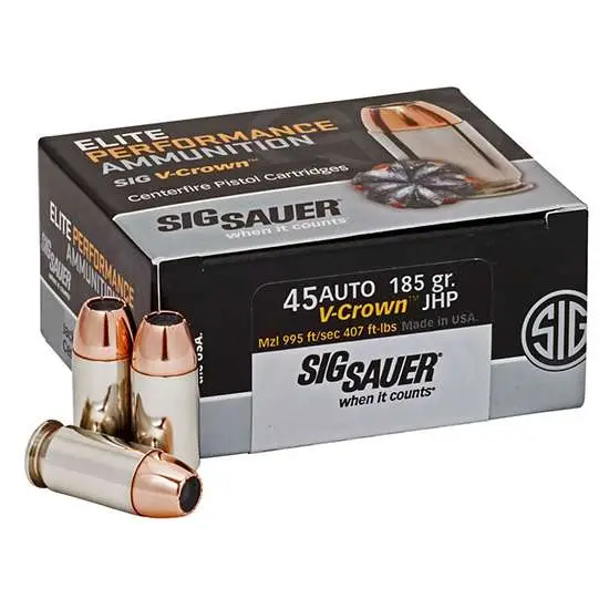 SIG SAUER ELITE V CROWN AMO 45 AUTO 185GR JHP 50RD (10 BOX CASE)