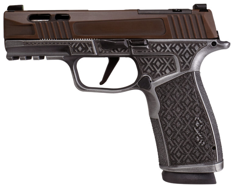 Introducing the X Debacle for the P365 XMACRO by Shark Coast Tactical a striking combination of style and precision. This custom model features an optic-ready slide finished in rugged brown Cerakote perfectly paired with a grey X-stippled frame for enhanced grip and control. Completing the package is a Zaffiri gold threaded barrel adding both functionality and flair. Whether you’re hitting the range or carrying it daily the X Debacle moffers an unbeatable blend of performance and aesthetics making it a standout addition to any collection. – 17rd magazine