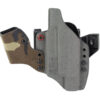 An ergonomic, mission-adjustable, RDS-compatible, multi-positional, deep concealment IWB hybrid thermoplastic holster. Its distinctive features enable concealed carry for a wide range of handgun fits from various carry positions while allowing a full firing grip prior to drawing. The design includes passive retention and adjustable tension, enabling a finely tuned fit and smooth draw. This evolution of the IncogX features a series of clips that provide more adaptability to the user while maintaining the original goals of improved grip, concealment, and function. The clips open outward and slide down with the holster, naturally locking over the belt. An actuated finger tab flexes to open, allowing quick installation or removal from the belt. An improved clip strut design combines functionality with customized concealment shims that can be easily installed or removed without tools. All IncogX models come with clip strut shims in three different concealment sizes: 1/8″, 1/4″, and 3/8″. Compatible with the Following Weapon Lights Streamlight TLR-1, TLR-1HL, TLR-1HL-X Surefire X300, X300U, X300T, Nightstick TCM-850, TWM-30, Holosun PID