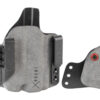 The Incog X is compatible with any Red Dot Sight (RDS) capable of being installed on the firearm manufacturer’s slide behind the ejection port (including mounting options using the firearm manufacturer’s adapter plates). They tested dozens of popular RDS models including larger optics like the Trijicon SRO. The Trijicon SRO requires a slight repositioning of the upper flat clip to eliminate minor interference, but works flawlessly after adjustment. Boltaron construction provides form fitting passive retention. Suede exterior adds extra friction for secure IWB wear. Adjustable clip positioning allows for ride-height adjustment.