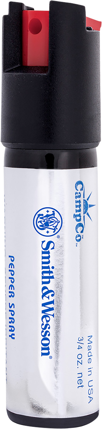 The S&W Keychain Pepper Spray is one of the most effective methods of personal protection and with one short blast, it can incapacitate one or more attackers for up to 30 minutes. Simply point the unit at an attacker and depress the actuator button to cause severe irritation to the eyes, throat and skin. The active ingredient oleoresin capsicum is derived from hot peppers and affects the eyes, nose and entire respiratory system to restrict attackers from further aggression. This method of self-defense is recommended and used by law enforcement and offers a fast-acting way to immobilize attackers. This unit has a 10-foot range (varies with wind conditions) and includes 0.75-ounces of pepper spray, a black leather holster and key chain quick release for access to your Pepper Shield at a moment’s notice. The holster offers a safe place for your Pepper Shield where it won’t misfire accidentally. Keep this unit in its holster, on your keychain or in a purse for practical protection wherever you go. This product is finished in black and made in the USA