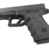 Talon Grips for Gen 4 Glock 19, 23, 25, 32, and 38 models with No Backstrap installed. This rear wrap grip is in the granulate texture. This grip provides full coverage on the side panels including above the thumb rest, ample coverage on the backstrap, and three finger wraps for the finger groves under the trigger guard. This grip has a logo cutout for the Glock emblem on the left side. This grip sticks extremely well even with the Rough Textured Frame (RTF). Talon Grips are 100% Made in the USA. Adhesive material is less than 0.5mm thick.