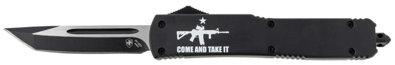 Templar Knife MAR15231 Gen II Come And Take It Slim 3.43″ OTF Tanto Plain Black Oxide Stonewashed 440C SS Blade, 5.05″ Black w/ “Come And Take It” AR-15 Gun Aluminum Handle, Glass Breaker