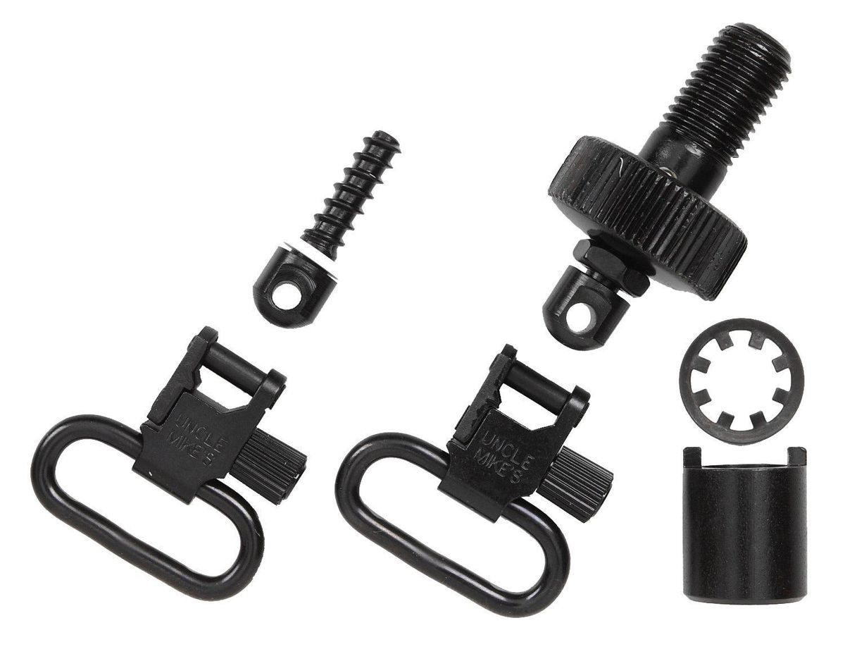Now you can add sling swivels to your favorite pump or auto without altering your shot gun Uncle Mike?s new magazine cap swivel sets have a factory magazine cap with the swivel base already installed. Just unscrew the factory magazine cap and replace it with the new cap. For the buttstock a 3/4? woodscrew swivel base is included along with two super swivels.