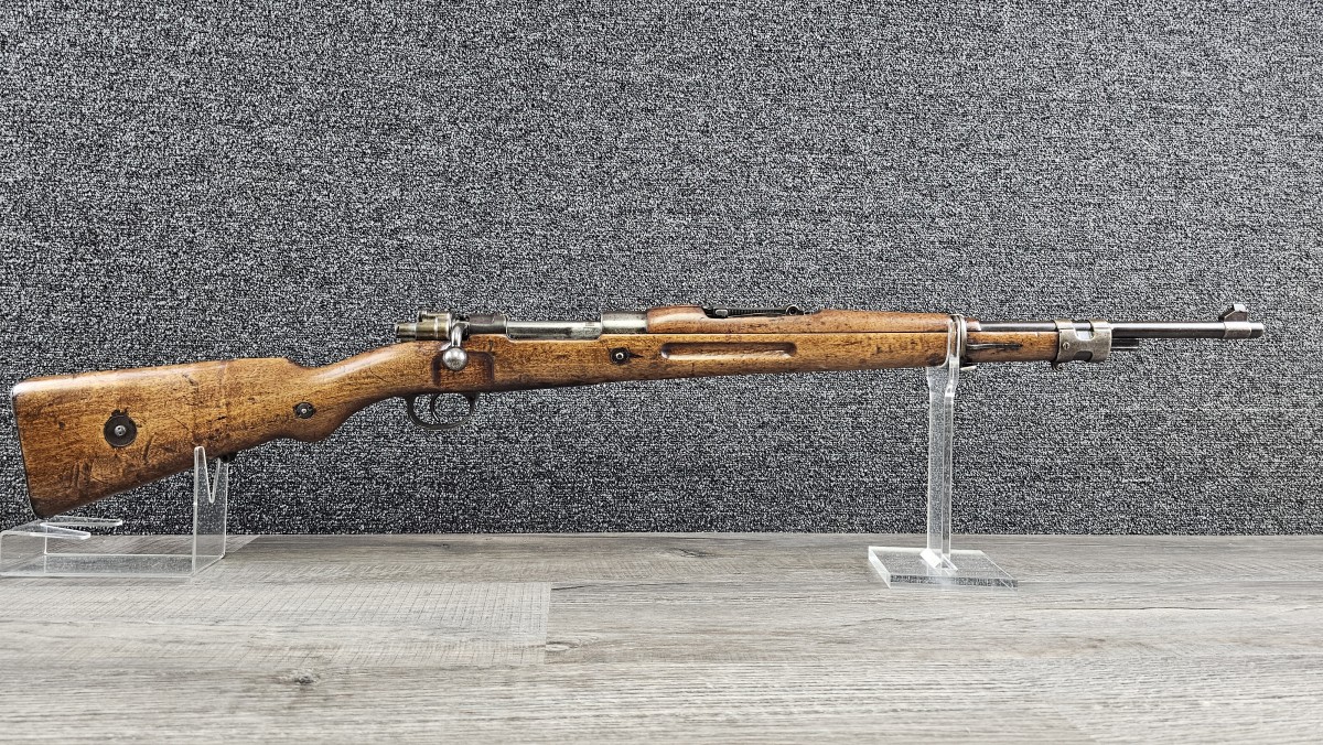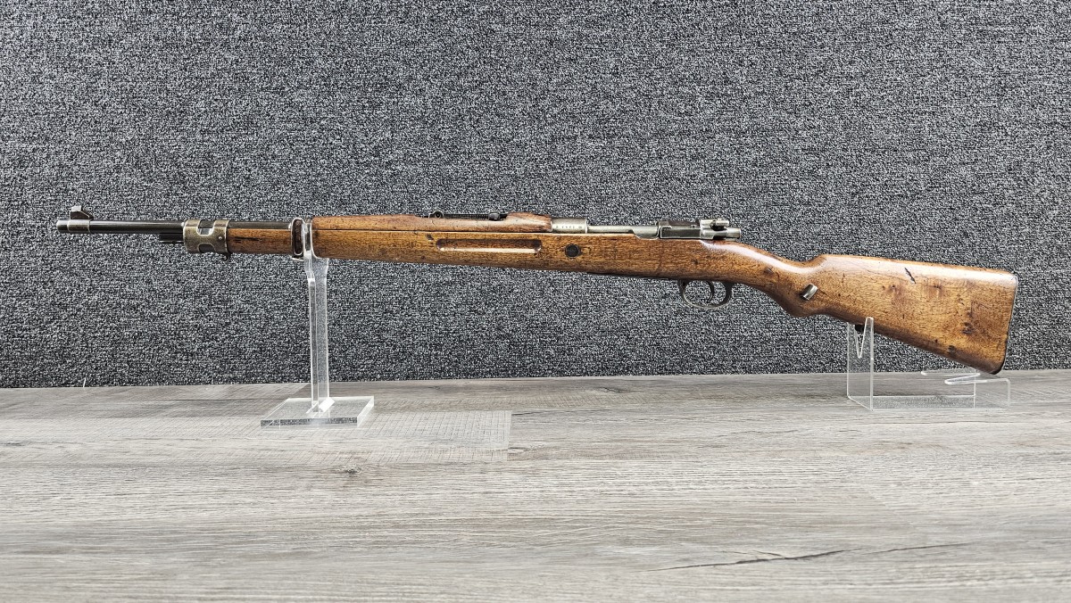 The Model 1908 rifle was a copy of the Mauser Gewehr 98, chambered in 7×57mm Mauser and with a simple tangent-leaf sight and a longer upper hand-guard.