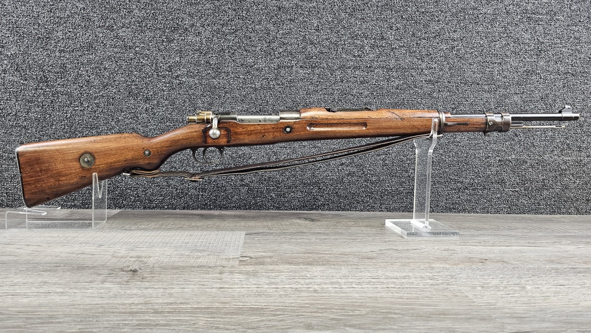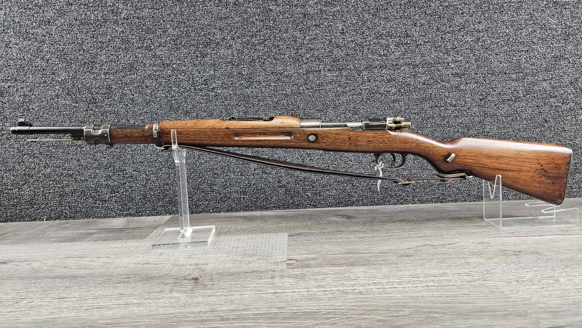 The Model 1908 rifle was a copy of the Mauser Gewehr 98, chambered in 7×57mm Mauser and with a simple tangent-leaf sight and a longer upper hand-guard.